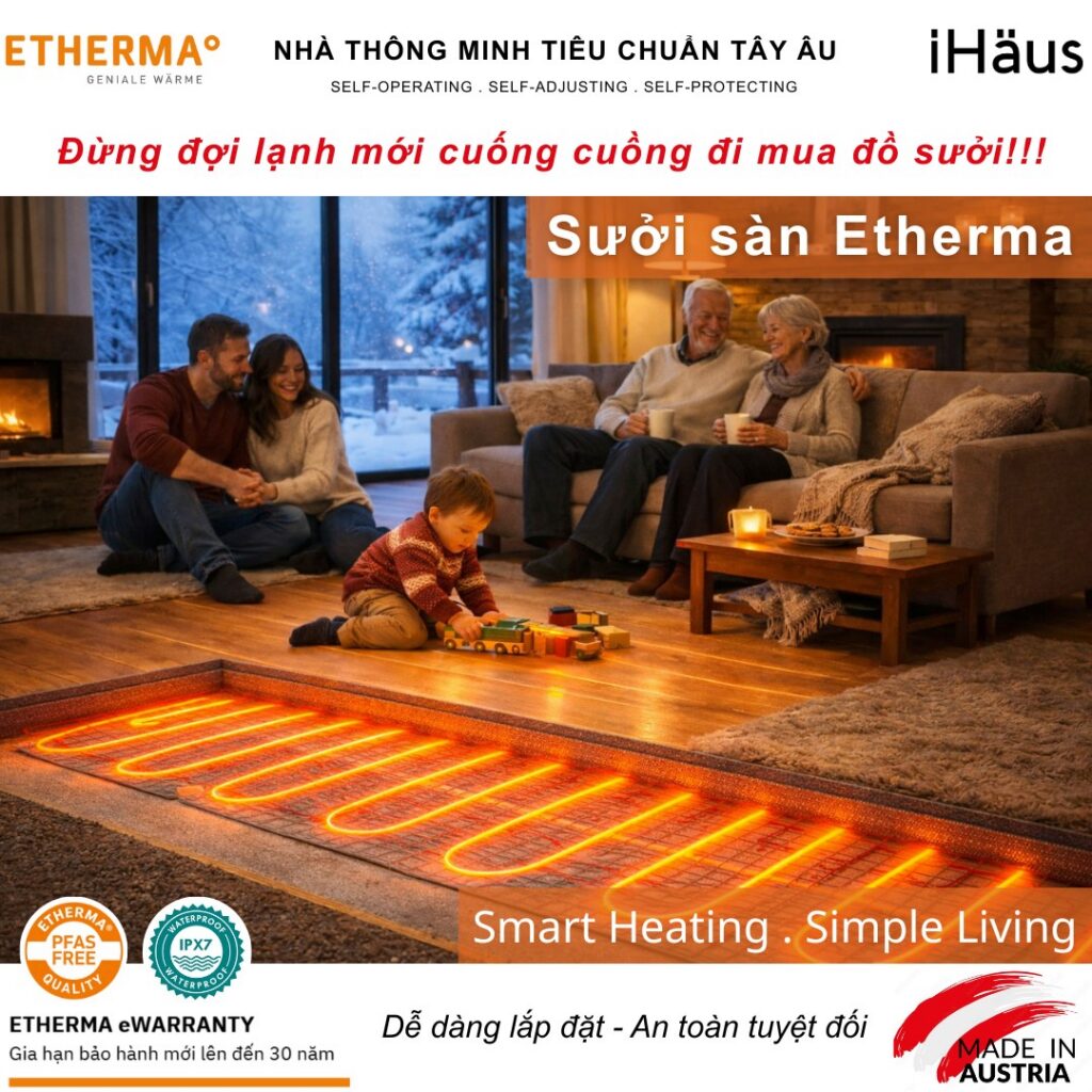 Vì vậy tôi chủ động tìm hiểu từ sớm và quyết định thử dùng thảm sưởi. Thực sự là dùng rồi mới thấy sự khác biệt. Thảm làm ấm rất từ tốn, nhiệt tỏa đều khắp mặt sàn, không nóng rát, không gây khô da. Các bé nằm chơi, bò trườn trên thảm vẫn ấm áp, tôi nhìn cũng yên tâm hơn hẳn. Ông bà ngồi phòng khách lâu cũng thấy dễ chịu, không bị mệt hay đau đầu như khi dùng các loại sưởi thổi gió.