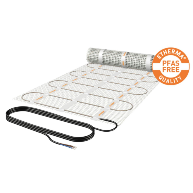 ETHERMA DS là hệ thống sưởi sàn điện dạng lưới (heating mat) siêu mỏng, chuyên dùng lắp đặt trực tiếp dưới lớp keo dán gạch. Sản phẩm tối ưu cho công trình cải tạo hoặc không muốn nâng cao nền sàn.