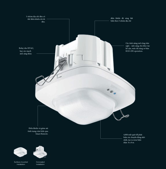 - Thiết lập kịch bản ánh sáng theo thời gian hoặc hiện diện
